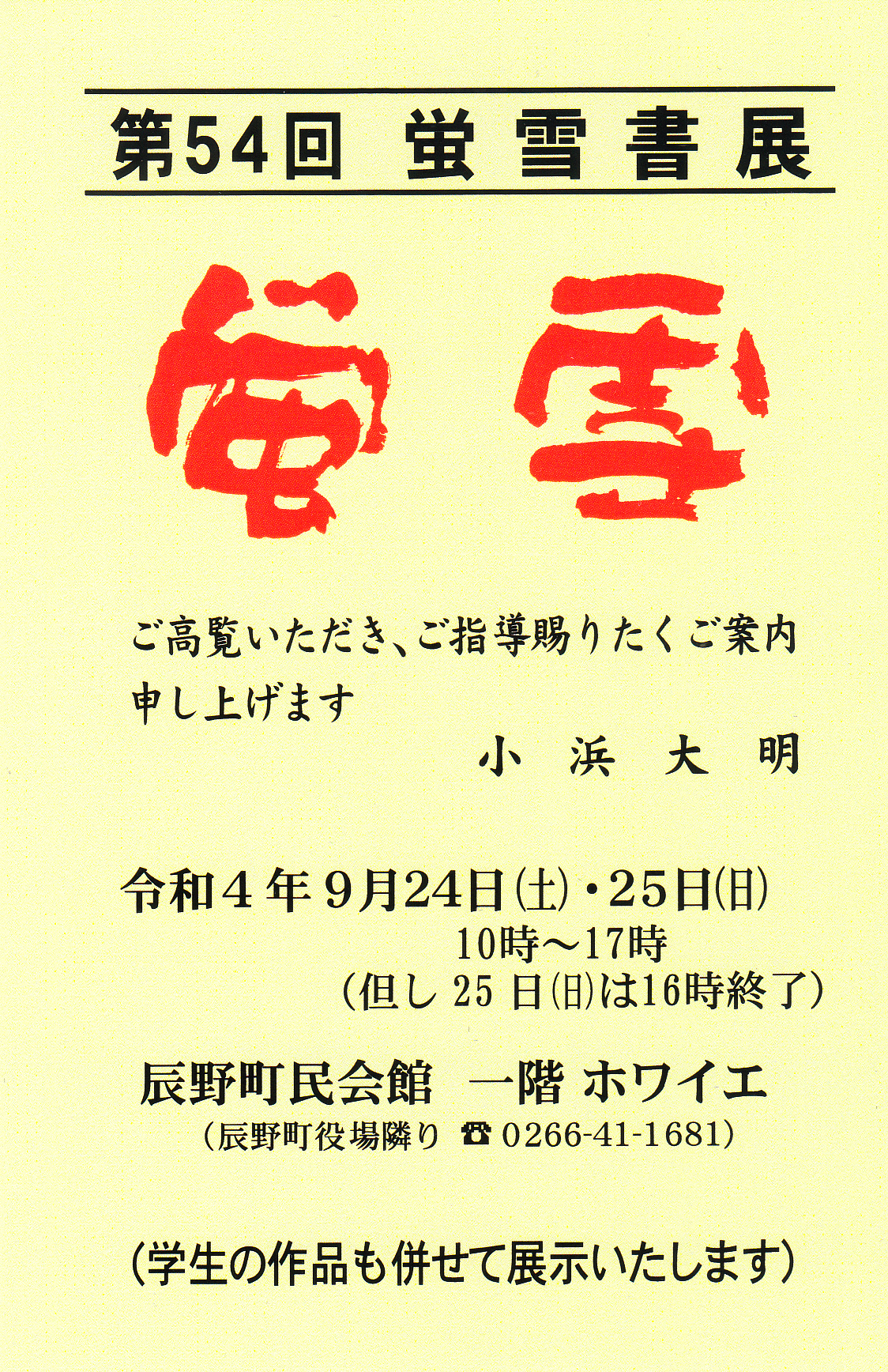 第54回蛍雪書展が令和4年9月24日(土)・25日(日)