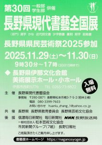 長野県伊那文化会館にて第30回長野県現代書藝全国展が開催されます。