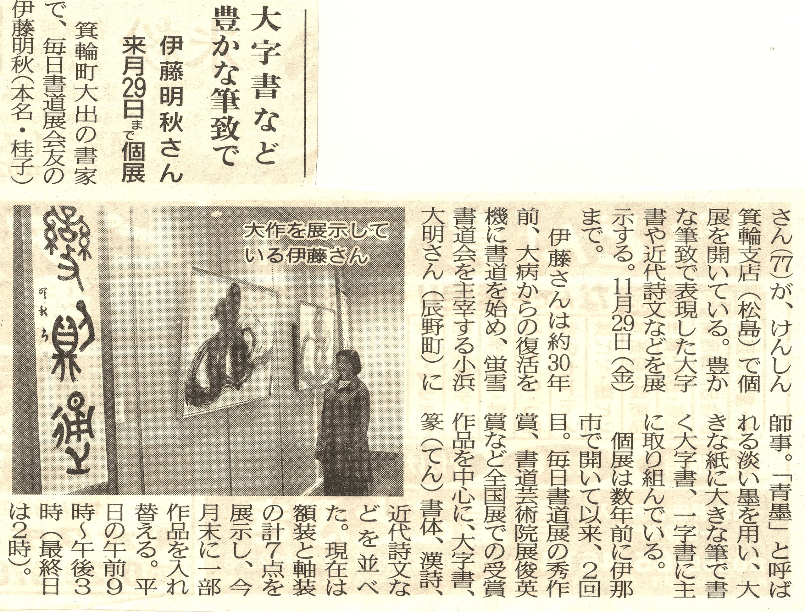 蛍雪書道会の箕輪教室へ通われている伊藤明秋先生が