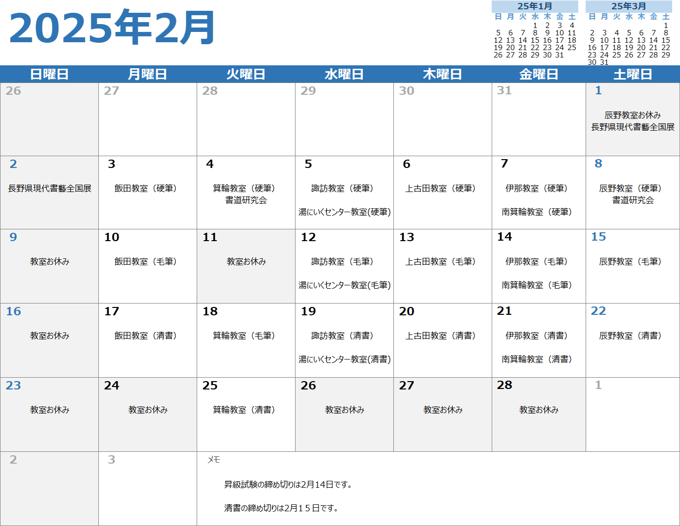 2月お稽古カレンダー