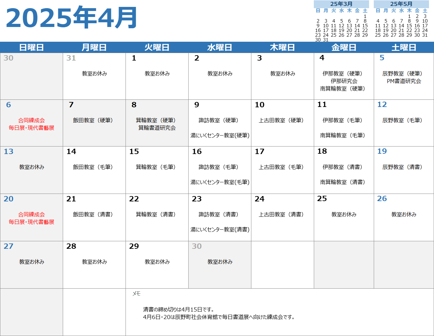 4月お稽古カレンダー